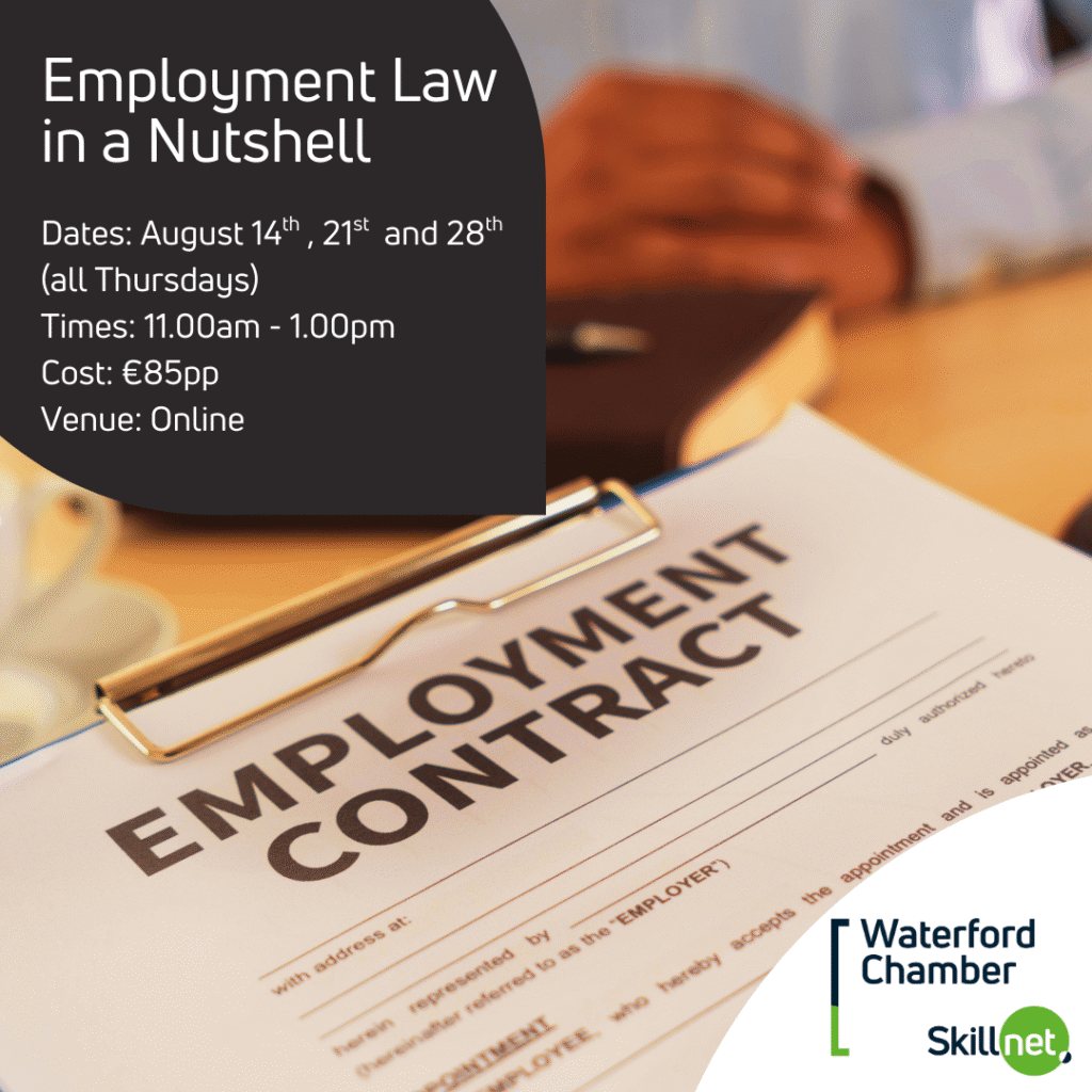 Employment Law in a Nutshell is aimed at the non-HR person including business owners, team leads, supervisors, managers, finance team and those required to understand the practical application of employment law and HR practices. The workshop simplifies the key pieces of employment law and gives practical tips for handling employee relations issues in an informative and hands on manner through exercises and case studies. Topics include; Recruitment & Selection, the Employment Relationship (contracts, GDPR, types of contracts, remote & flexible working) Working Time, Equality & Dignity at Work, Disciplinary & Grievances, Leave of Absence, Employee Relations Issues.